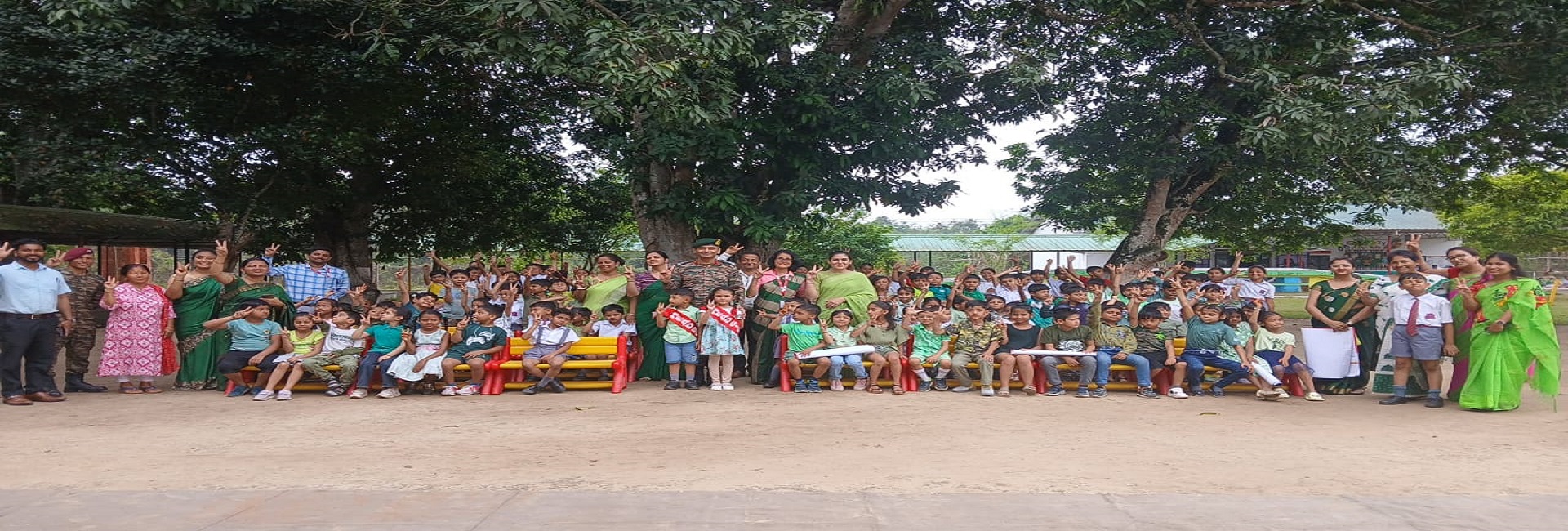 41 Rhino Nursery School which was located at Lichubari Complex was rechristened as Army School and shifted to the present location in Rowriah near MES gate in the year 1992.The school was inaugurated by Brig. O S Goraya, Cdr. 41 Sub Area on 01 July,1992 with classes KG to Class IV.In July 1997,the nursery section of the Army school was bifurcated and established at Rhino Officers Institute. The School is run under the overall aegis of AWES and is under the administrative control of Commander, 41 Sub Area. It is a Co-Educational Institution having classes from I to XII.