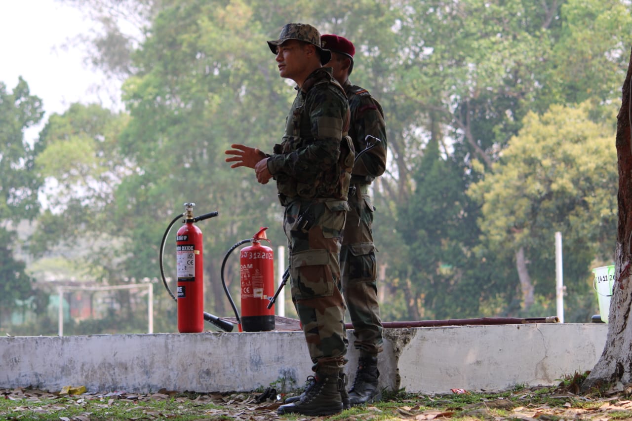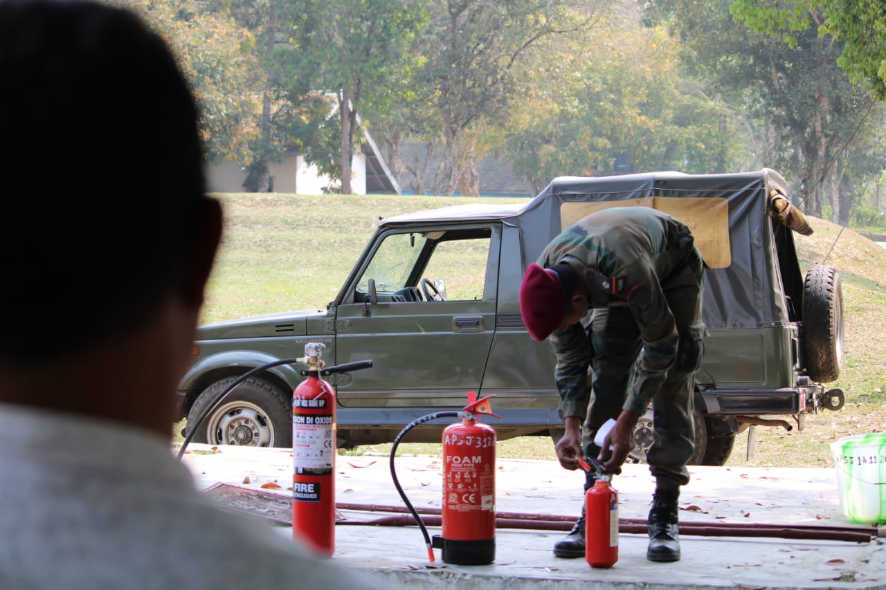 A fire drill was organised in the school on 17 Mar 2022 for teachers and students by 21 Para in which teachers and students were acquainted with the procedure to be followed in case of a fire in the school premises and how to operate the fire fighting equipments.
