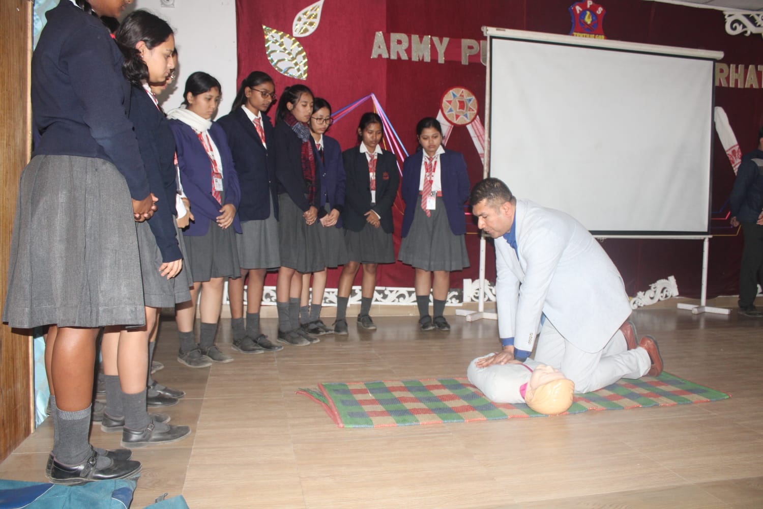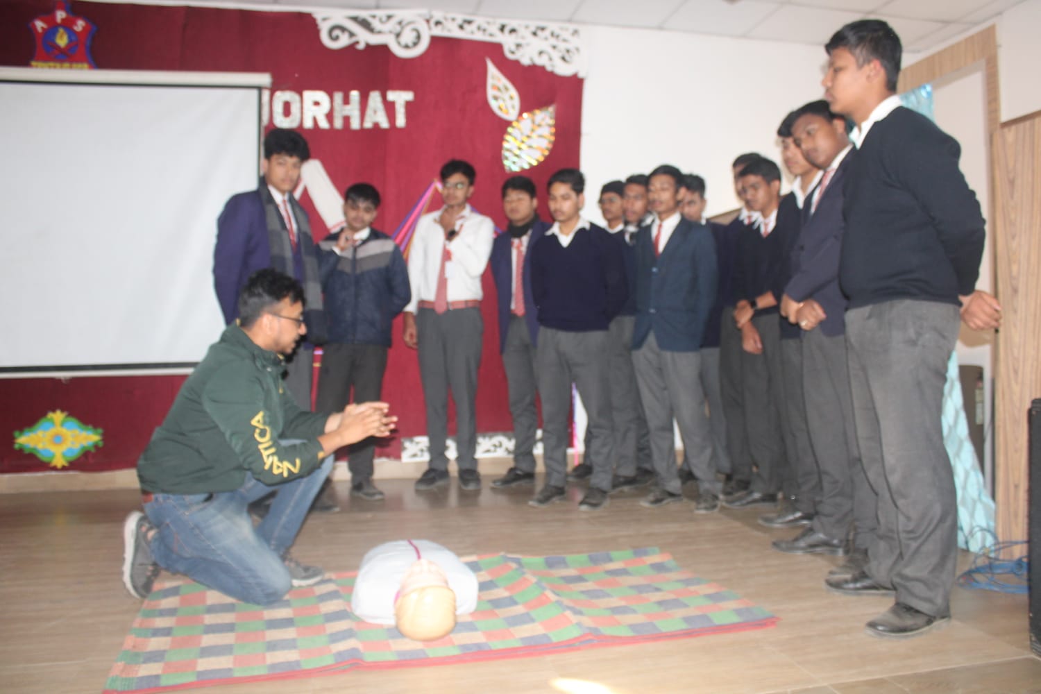 A CPR (Cardiopulmonary Resuscitation) training program was conducted in the school on 12 January for students of Classes IX to XII. The objective of the program was to create awareness about life-saving emergency procedures and to equip students with essential first-aid skills. The training session was conducted by Dr. Sanjeev Baruah and Dr. Bhaskar Bora, who explained the importance of timely CPR in emergency situations. Students were divided into groups and were given hands-on practical training, enabling them to learn the correct techniques under expert guidance. The session was highly informative and engaging. Students actively participated, clarified their doubts, and gained practical experience that enhanced their confidence in handling medical emergencies. The program proved to be a valuable learning experience and reinforced the importance of preparedness and responsibility in saving lives.