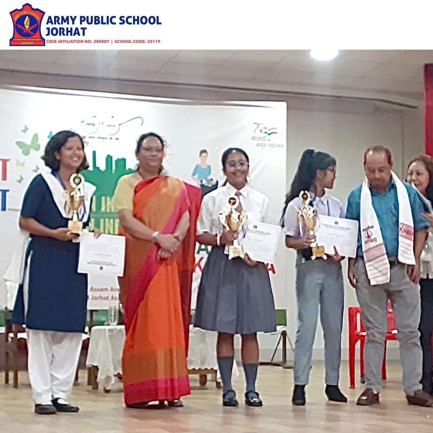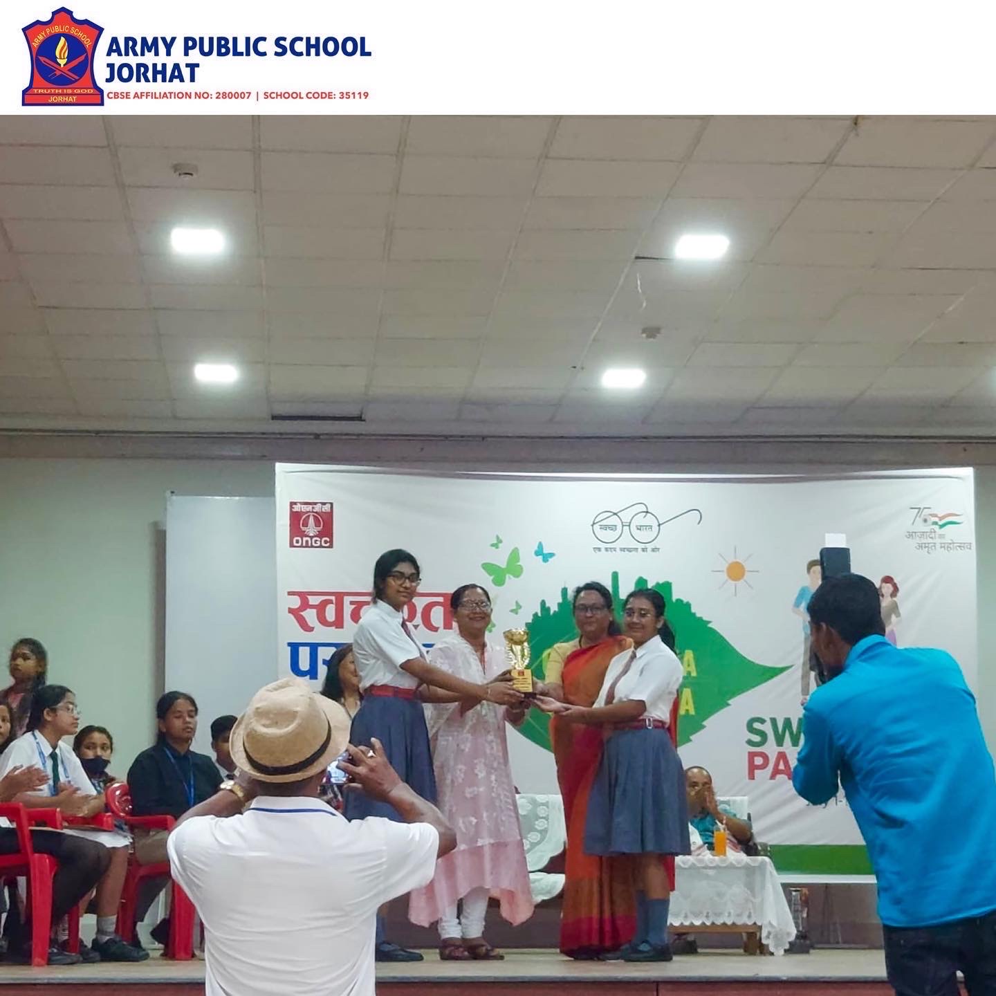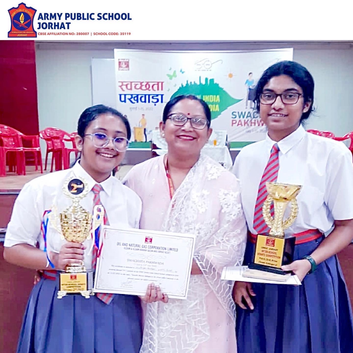 Army Public School Jorhat bagged the third position in Inter School Debate Competition organised by Oil and Natural Gas Corporation Limited on 12 July 2022 on the topic " Clean India Campaign is the ultimate answer for India's Prosperity". Miss Krishangee Handique of class XII was adjudged the second best speaker and received a cash award of Rs 7000/-.
